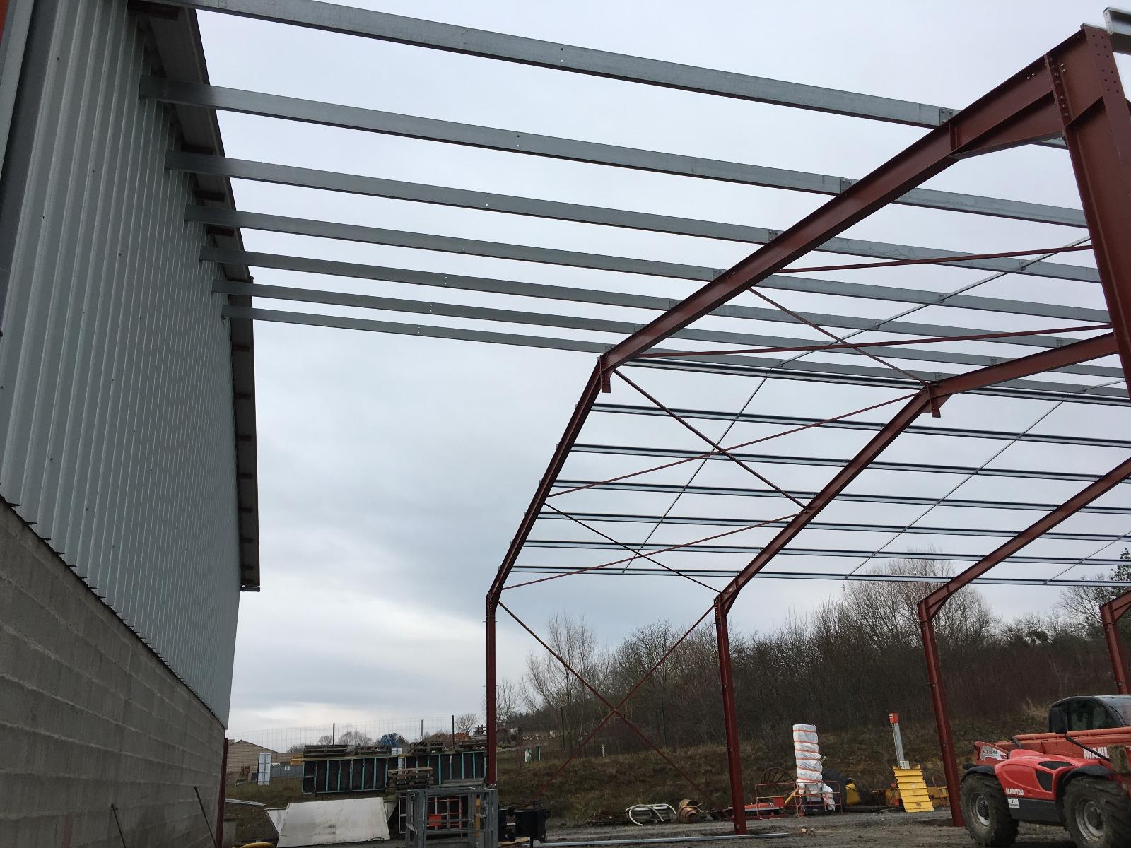 Concernant la couverture, nous posons celles en tôle bac acier, produit qui se pose avec ou sans revêtement de régulateur contre la condensation. Ce produit est très léger, avec un choix de couleurs plus varié et dont la pose est possible sur des pentes à 10 % et plus.